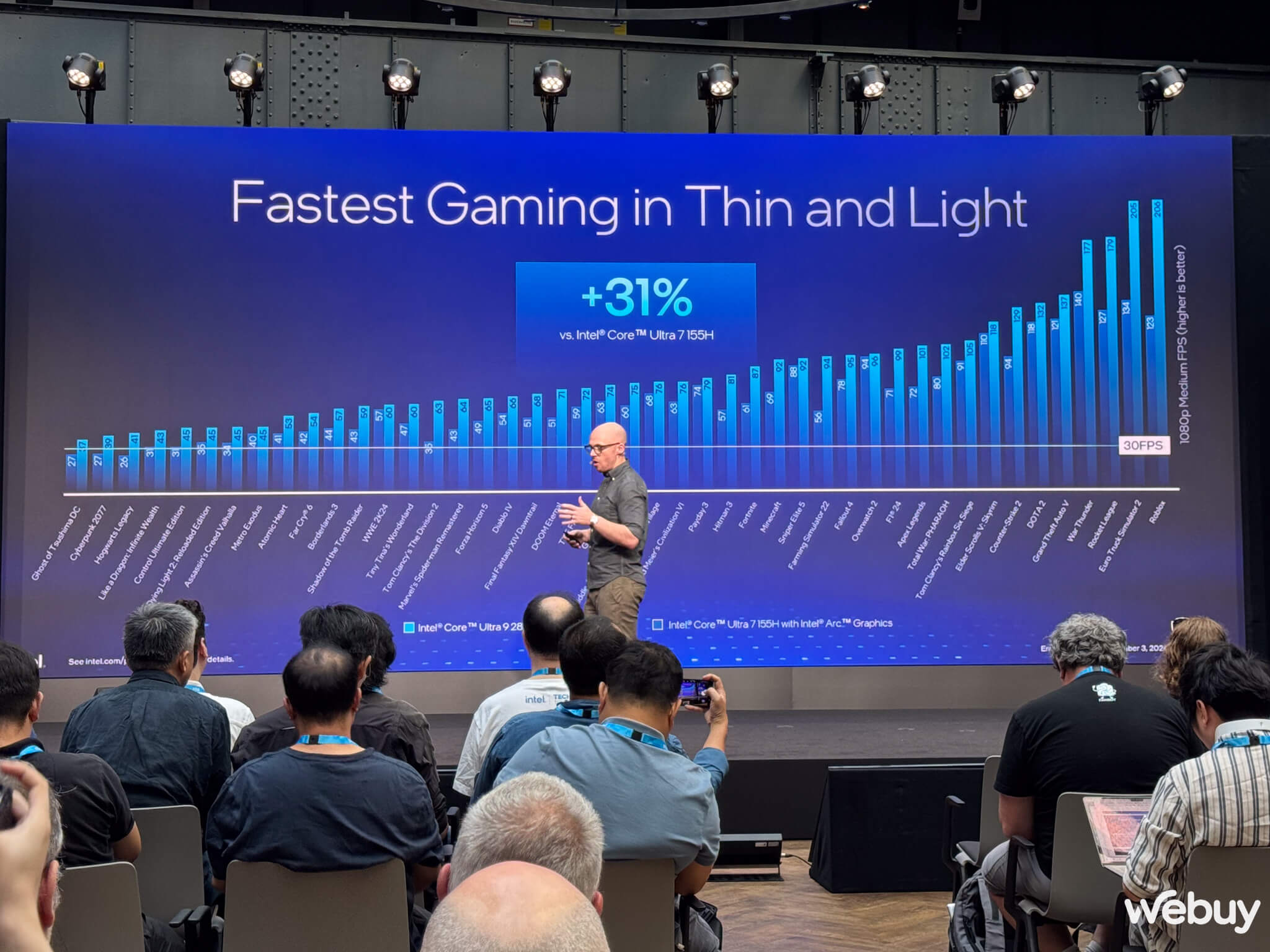 Khả năng chơi game của dòng chip này cũng được nâng cấp đáng kể. Intel trang bị vi kiến trúc đồ họa Xe2, hãng công bố hiệu năng xử lý đồ họa trung bình tăng hơn 30% trên chip Intel Core Ultra 9 288V ( so với Core Ultra 7 155H).